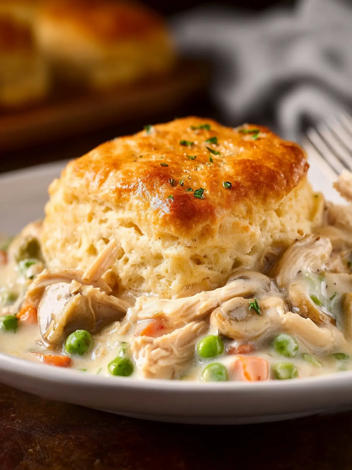 Serve the chicken and biscuit casserole in a beautiful baking dish and garnish with chopped parsley for a pop of color. This not only makes for a lovely presentation but also hints at the fresh flavors waiting inside. Enjoy every comforting bite!