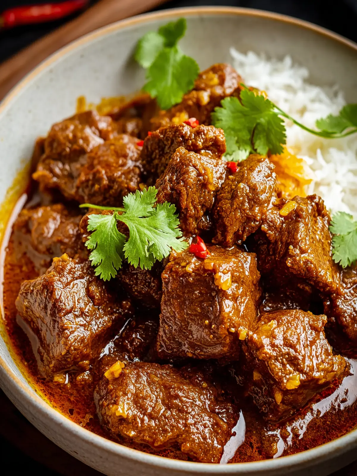 A flavorful and tender beef chuck roast curry, marinated and slow-cooked to perfection.